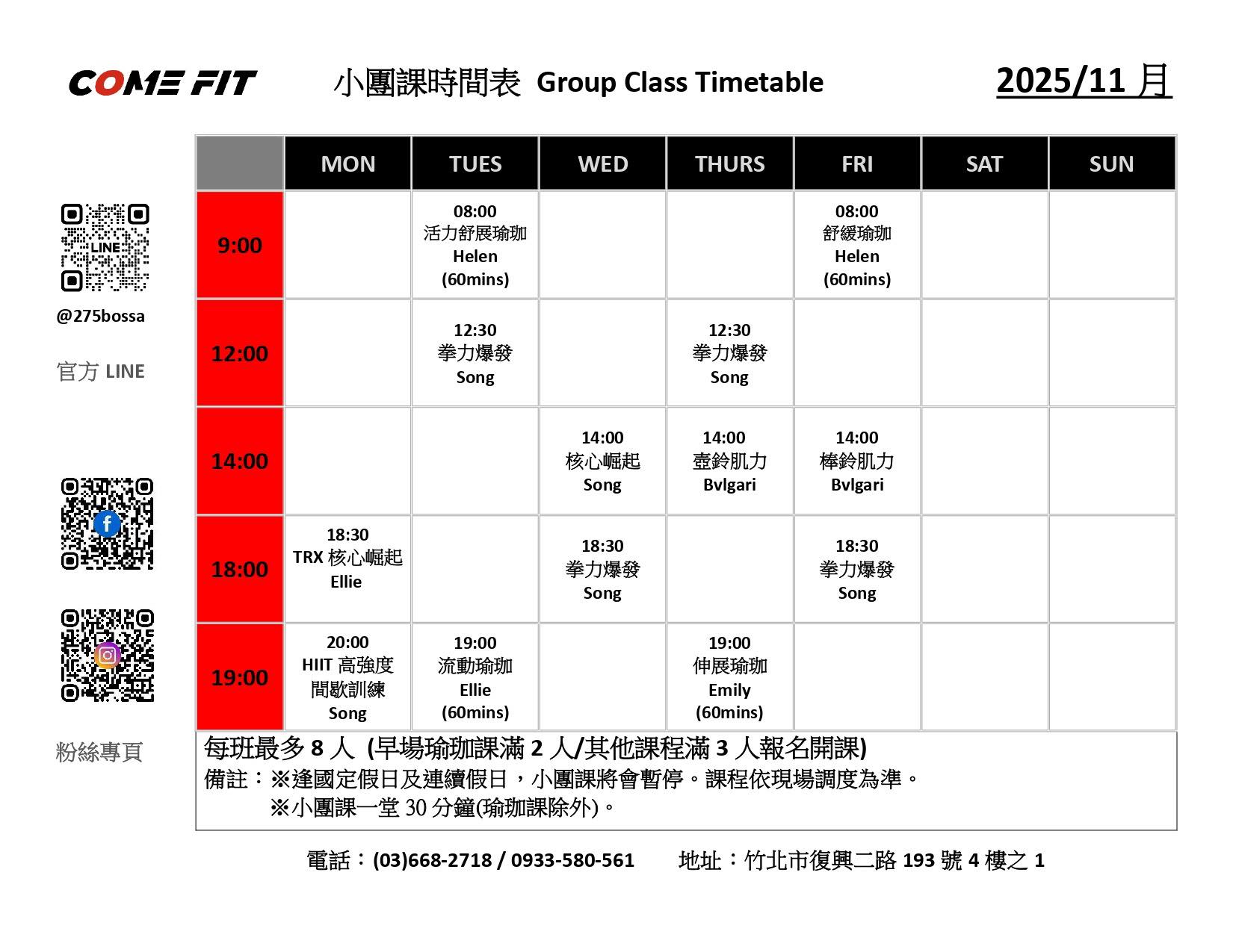 11月份課表 | 新竹健身房 | 新竹健身房推薦